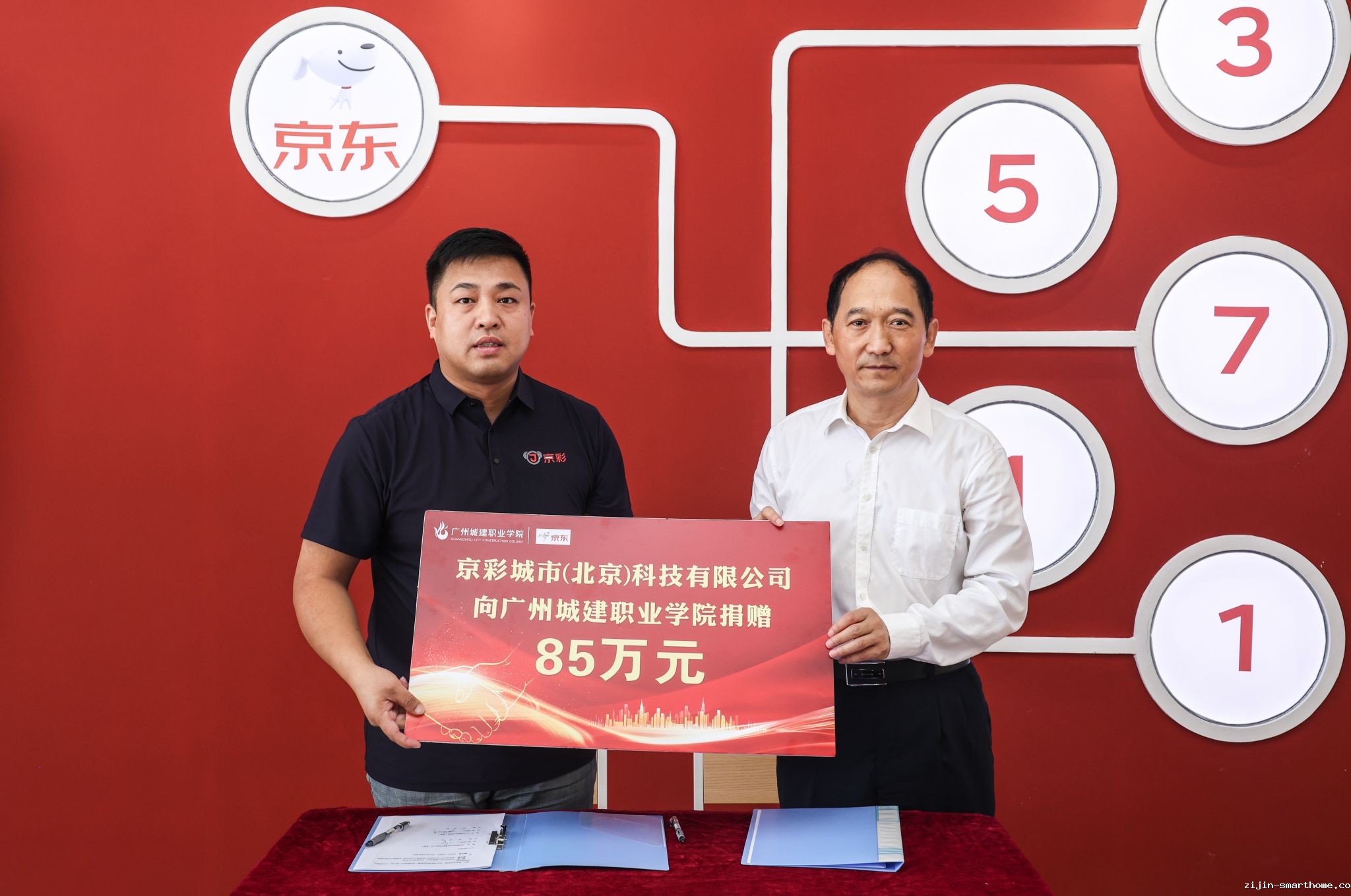仪式上,张前程董事长与杨清国副校长签署捐赠协议,京彩集团向我校捐赠85万元,用于实训基地智能化升级。
