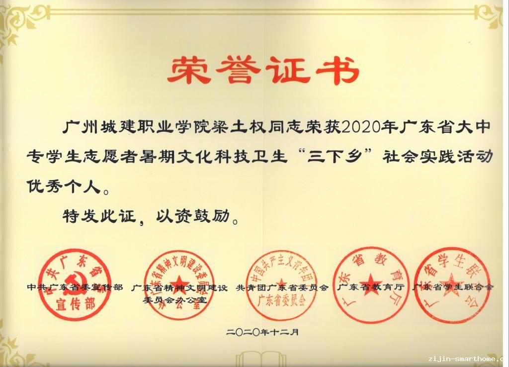 近日,学院收到团省委下发的“2020年广东省大中专学生志愿者暑期”三下乡“社会实践荣誉证书。我院“传承文化内涵,助力乡村建设”实践队荣获优秀团队(为我校唯一获奖团队),梁土权老师和林妍旋同学荣获优秀个人(为我校唯一获奖的老师和学生),同时,实践团队的事迹入选了“2020年广东大中专学生志愿者暑期文化科技卫生“三下乡”优秀事迹材料汇编。
